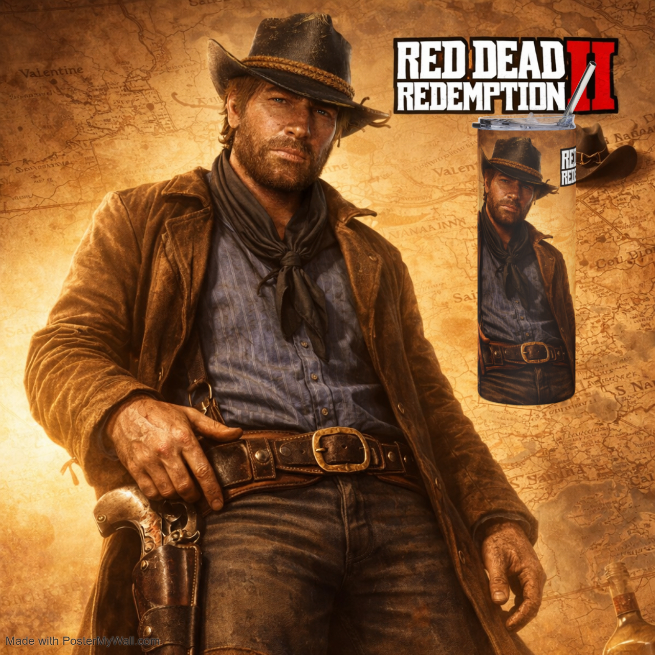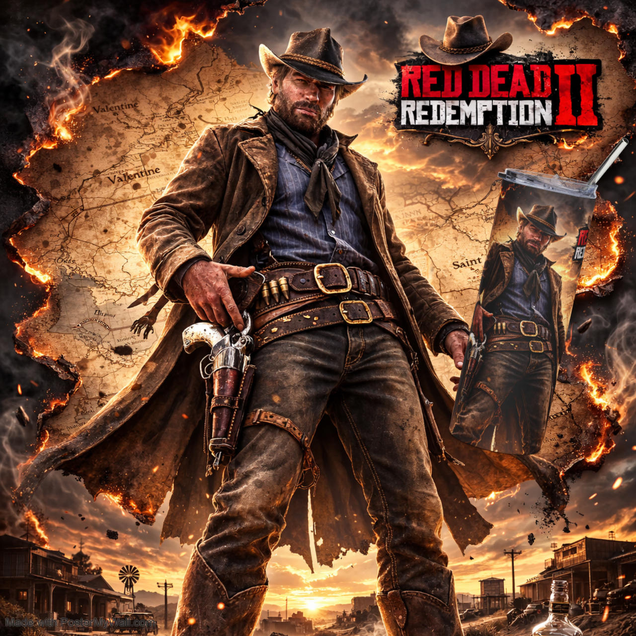 20oz Stainless Steel Tumbler — Western Gunslinger Cowboy Travel Mug (Red Dead Style)