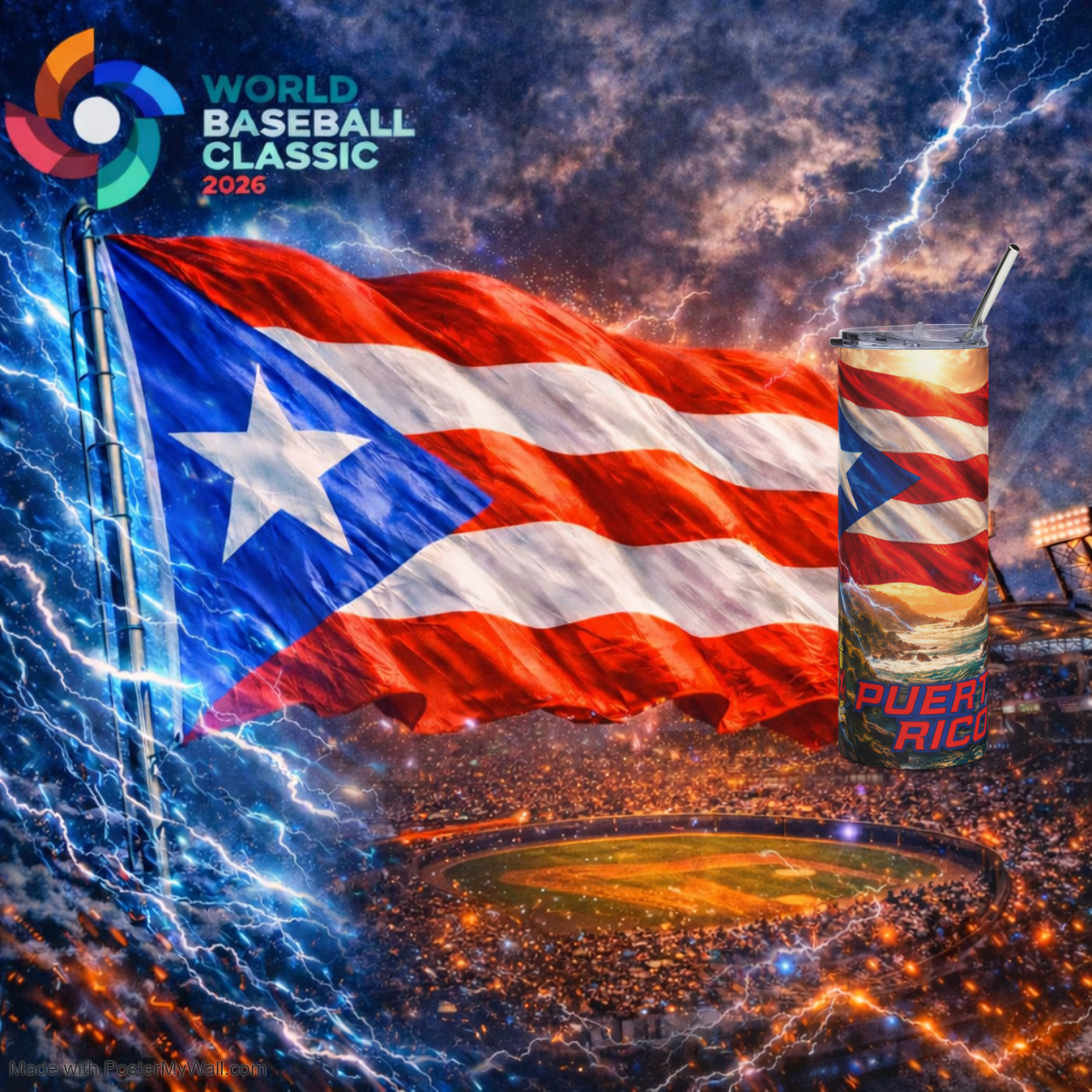 World Baseball Classic Puerto Rican Pride 20oz Stainless Tumbler — Puerto Rico Flag Design