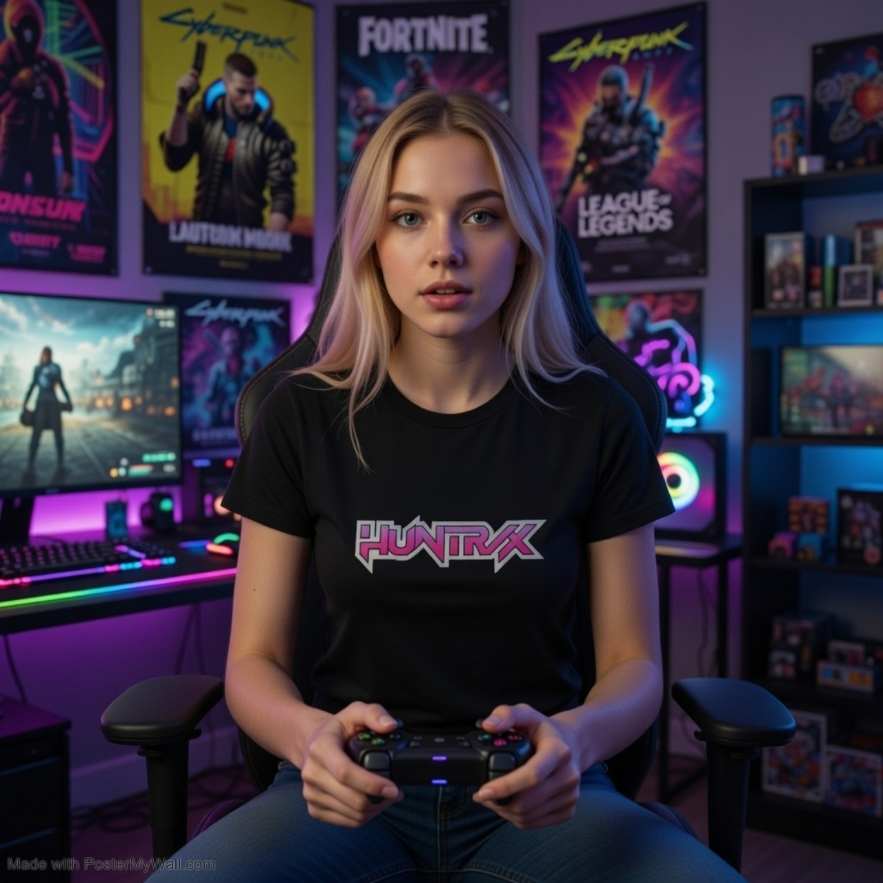 HUNTRX Retro Logo Women's Tee — Pink Vaporwave Graphic T-Shirt